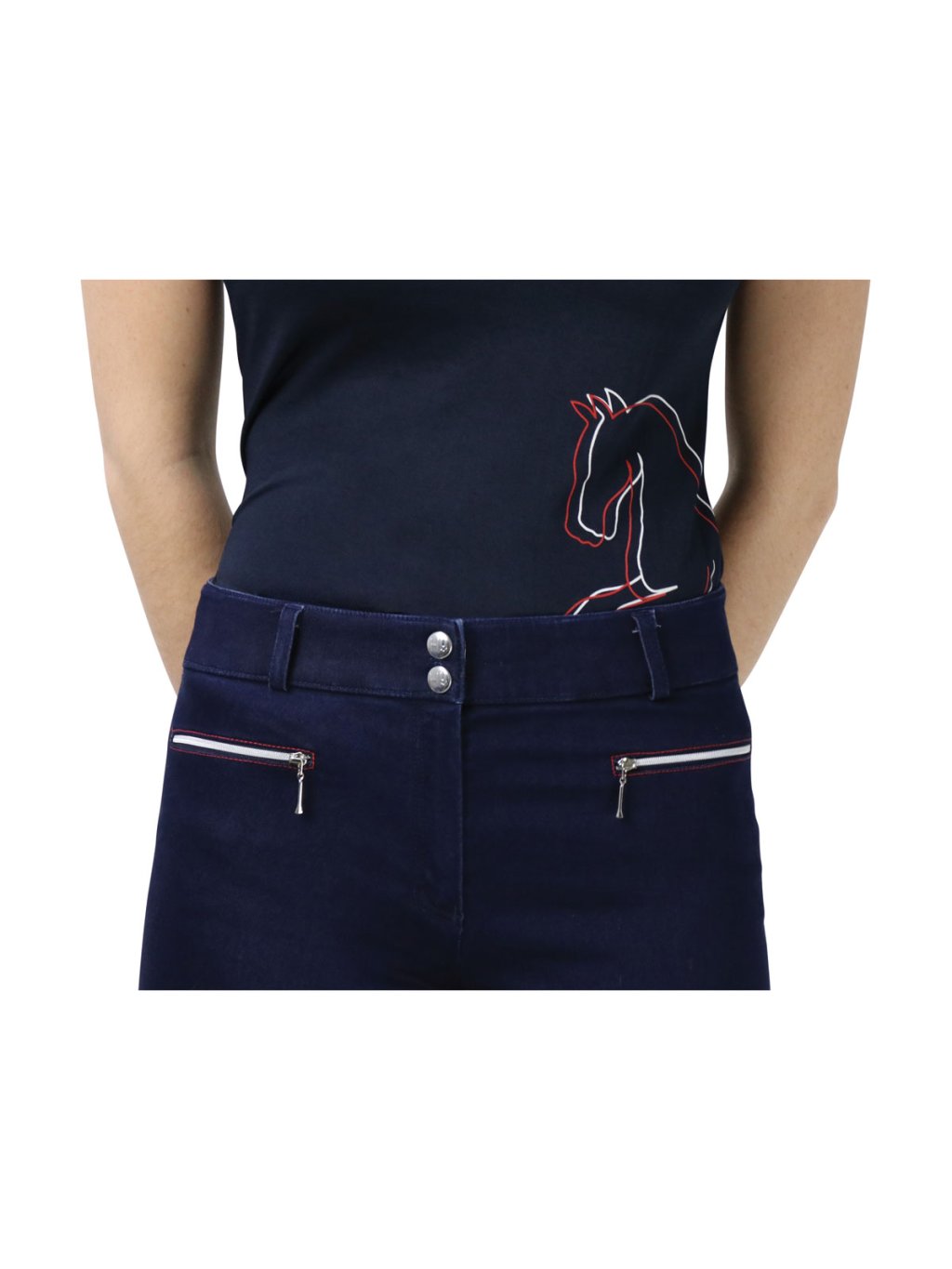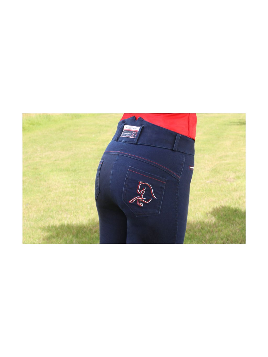 Měkký, pružný džínový strečový materiál vám zajistí pohodlí a zároveň vám umožní podat co nejlepší výkon. Praktické přední kapsy na zip a dvě hluboké zadní kapsy se siluetou koně Richmonda jsou ideální pro úschovu věcí. S přilnavými, silikonovými koleny pro větší bezpečnost při pobytu v sedle a nezabalenými strečovými lemy kotníků, které zajišťují optimální pohodlí při nošení vysokých bot nebo ponožek.